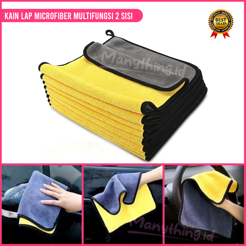 Detail (MANYTHING) Kain Lap Microfiber Serbaguna 30X30Cm 2 Sisi Halus Multifungsi 500GSM