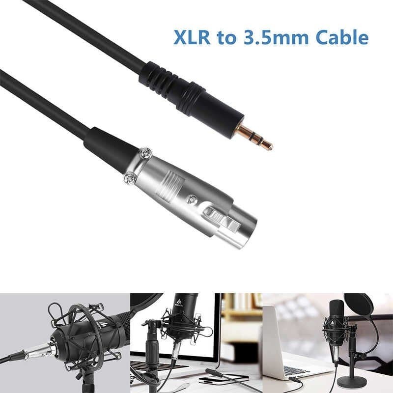 PACKAGE CONTENTS 1 x Foam Windshield 1 x 3.5 mm To XLR Cable 1 x 3.5 mm TRRS Cable Splitter 1 x Shock Mount 1 x Desk Stand 1 x Pop Filter 1 x Microphone