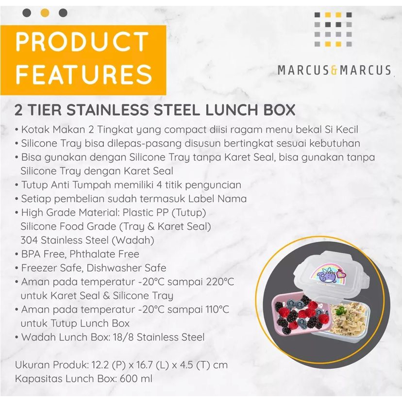 Marcus & Marcus 2 Tier Stainless Steel Lunch Box - Kotak Makan Anak Stainless Dua Tingkat