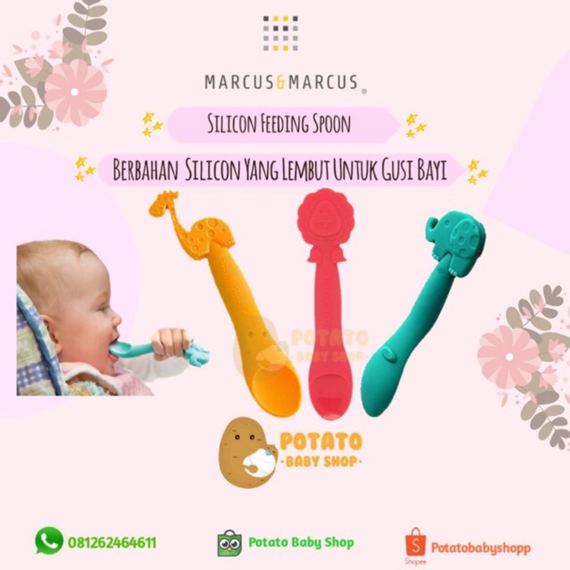Details : adalah sendok makan anak dengan multi-winning award produk silicone yang di design untuk kenyamanan anak dalam tahap MPASI dari bayi sampai tahap makan untuk balita. Design unik Marcus & Marcus memiliki fitur-fitur untuk mendorong anak mandiri MPASI dan juga mengembangkan skill motorik anak dari usia dini. Bahan Marcus & Marcus sangat high grade dan terasa kualitasnya saat di pegang dan mudah dibersihkan.