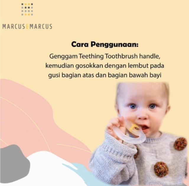 Marcus & Marcus Baby Teething Toothbrush Harga: 130,000 Motif : Elephant | Lion | Giraffe . Marcus&Marcus Baby Teething Toothbrush di desain secara sangat unik dan menarik khusus untuk si Kecil yang sedang mulai tumbuh gigi dan bertumbuh dalam perkembangan motorik.
