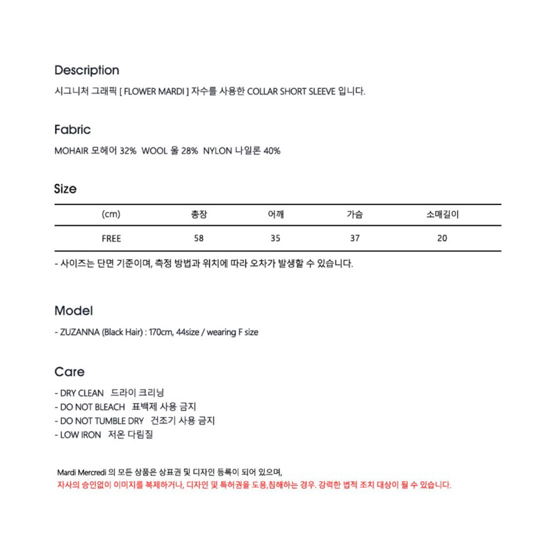 MARDI MERCREDI - Mohair Cable Top Collar Short Sleeve 100% original