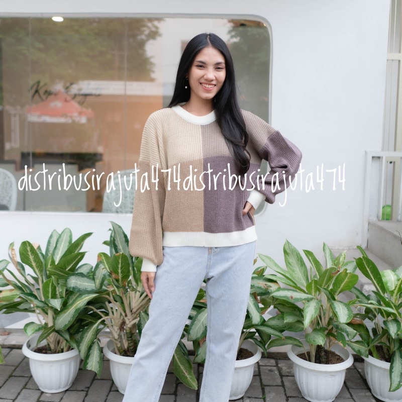 Detail MARIE TOP BLOUSE SWEATER RAJUT OVERSIZE JUMBO TEBAL