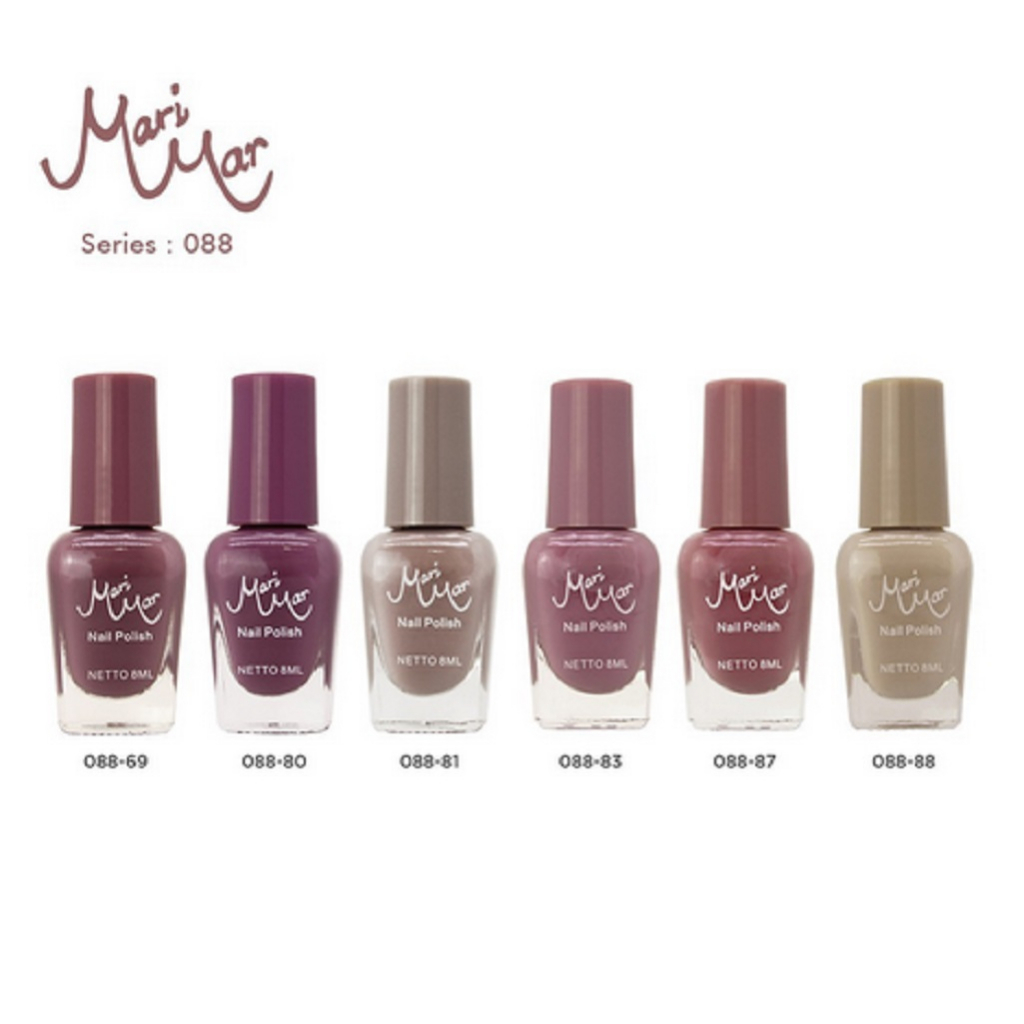 HARGA SATUAN Beli <12pc= warna Random Beli 12pc=1 box semua warna Exp: terbaru Netto 8mL MARIMAR NAIL POLISH NUDE COLORS NEW FASHION CODE 088 | 089 Cat kuku warna nude cantik dengan warna-warna terpilih dihati. Tersedia beragam warna yang dapat menyesuaikan mode fashion terkini, sehingga akan membuat anda lebih anggun dan menyatu pada acara baik itu casual ataupun normal. ⚠️ Tidak bisa pilih warna dan kemasan (SEMUA RANDOM) ⚠️ Semua produk pasti 100% Original ⚠️ Semua produk terdaftar BPOM