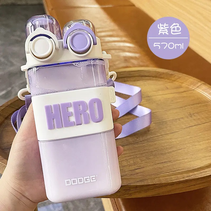 Double Straw Bottle Botol Minum Plastik Sedotan Ganda 600ML Ukuran : 10.9 x 6.6 x 19.4 cm Material : plastik PP Kapasitas : 600 ML