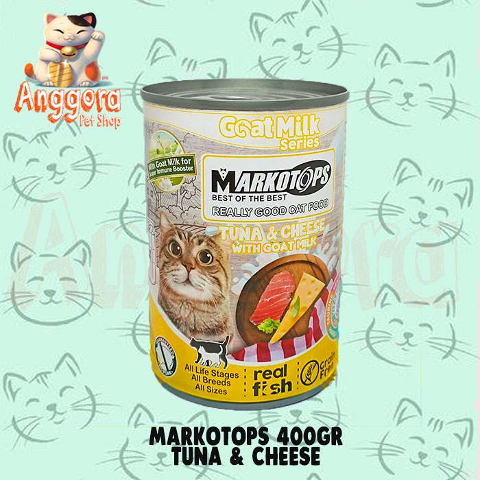 Markotops Kaleng 400gr Makanan Kucing Goat Milk 1DUS ( GRAB GOSEND ) Note : 1 dus isi 24pcs kaleng Makanan basah dari thailand ini dikemas dalam kemasan kaleng 400 gr yg mengandung Omega 3, Vitamin dan Mineral serta bebas bijirin dan gluten (Gluten merupakan salah satu jenis protein yang biasanya terkandung di dalam gandum hasil persilangan (Triticale), gandum biasa, dan jelai atau barley. Jika Anda melihat makanan yang memiliki kemasan bertuliskan gluten-free atau bebas gluten berarti makanan tersebut tidak mengandung protein gluten.