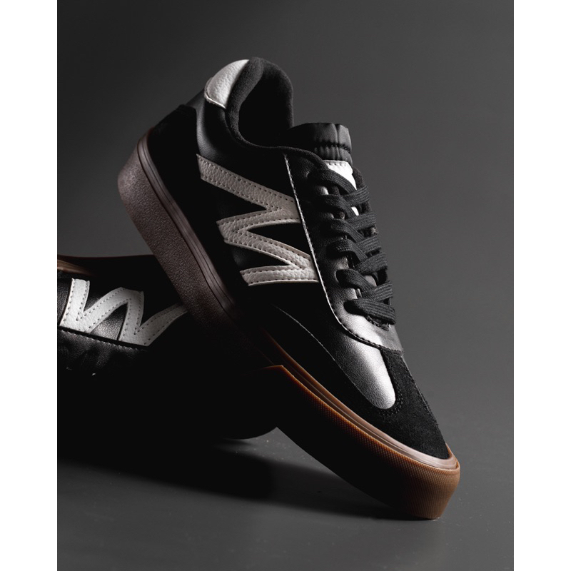Detail MARQUE.CO ‘Gustav’ Series - Black Hitam, White Putih, Gum Sole Coklat, Sepatu Sneakers Casual Pria Wanita dengan Material Kulit/Leather Vulcanized, dengan Kombinasi Suede & Nylon, Original Product with Best Quality