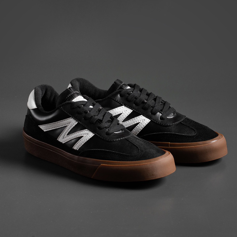 MARQUE.CO ‘Gustav’ Series - Black Hitam, White Putih, Gum Sole Coklat, Sepatu Sneakers Casual Pria Wanita dengan Material Kulit/Leather Vulcanized, dengan Kombinasi Suede & Nylon, Original Product with Best Quality