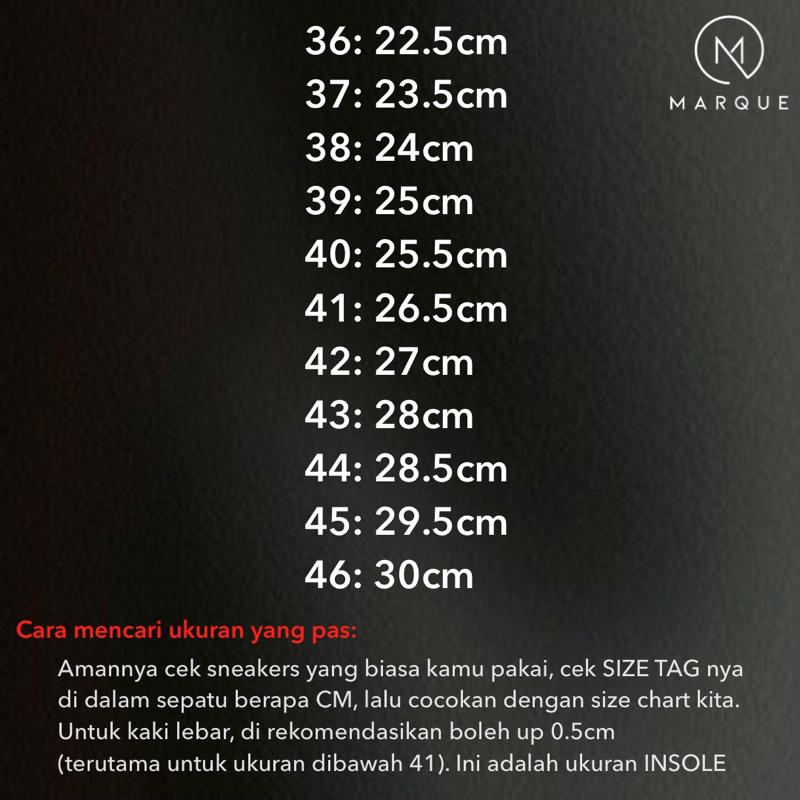 Kelengkapan: MARQUE Premium Design Box FREE Sticker pack 5pcs FREE Double box sehingga box dijamin aman FREE kartu ucapan jika buat hadiah (by request, max 10 kata) . . NO REFUND, boleh tuker size tapi ongkir bolak balik ditanggung pembeli ya . . Pengiriman setiap hari dari Bandung pada sore hari