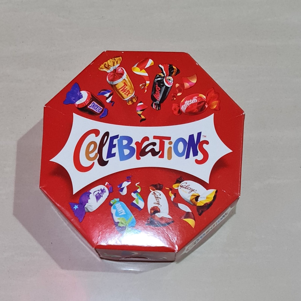 Celebration Mix Is a collection of chocolates made by Mars. This Celebrations Chocolate contains a variety of mini chocolates from England that are made into one in a box. Inside are chocolate bounty, milky way, snickers, twix, mars, galaxy/dove, maltesers, dove caramel/galaxy caramel. Celebrations chocolate is suitable to be enjoyed together with your family and friends.