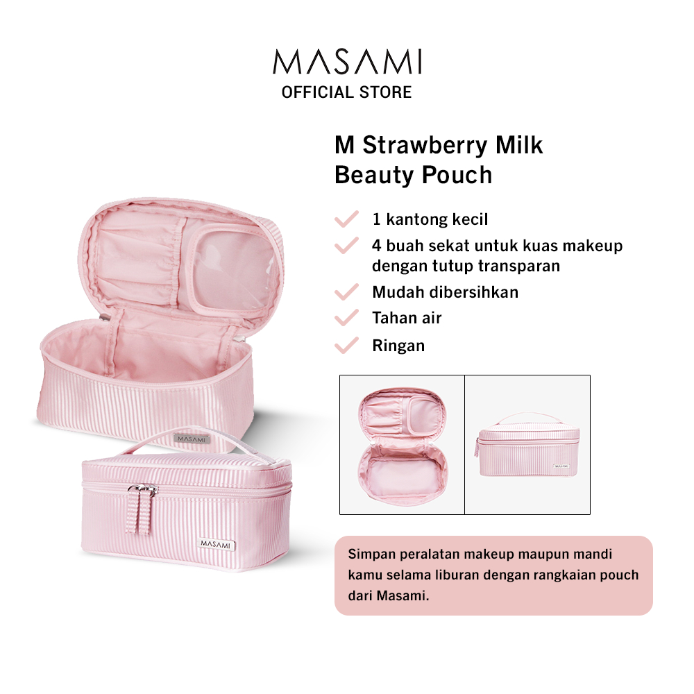 Fungsi: Simpan peralatan makeup maupun mandi kamu selama liburan dengan rangkaian pouch dari Masami yang tidak mudah basah, ringan, dan mudah dibawa kemana saja.