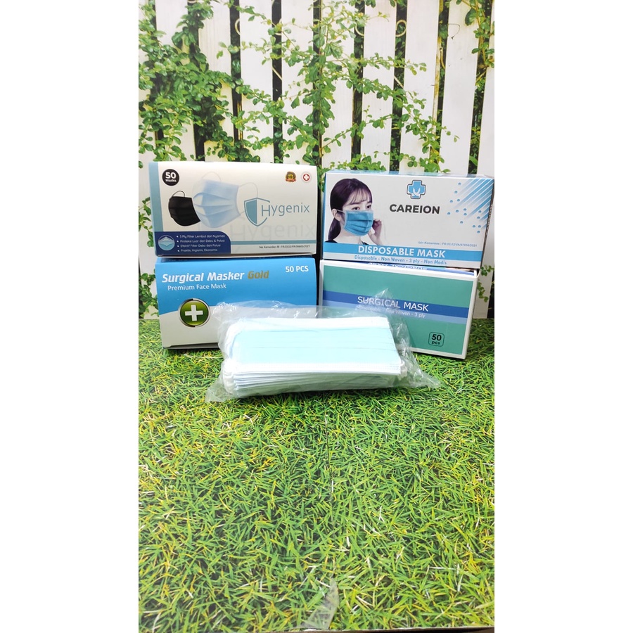Detail Masker 3 ply isi 50 Murah Biru - Hitam Murah Headloop dan Earloop