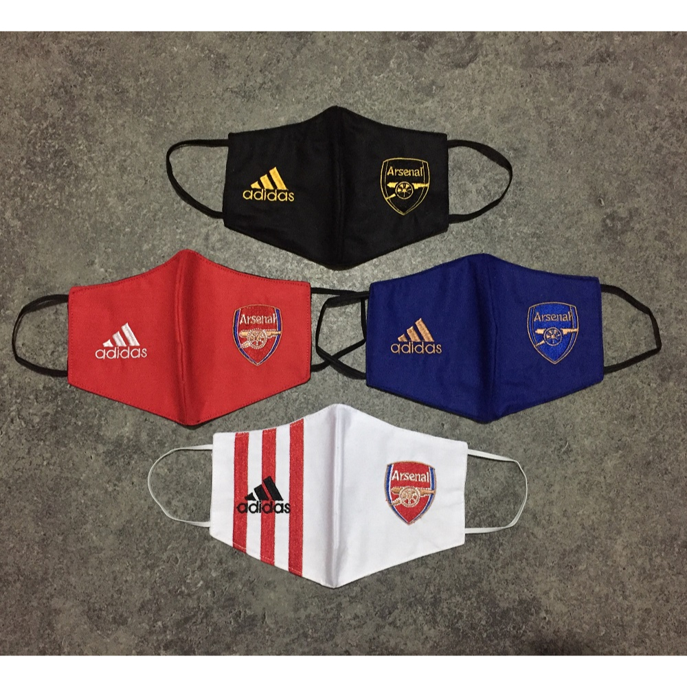 Your browser does not support the video tag.Video perkenalan produk Masker Arsenal bordir premium. Sumber: Shopee.