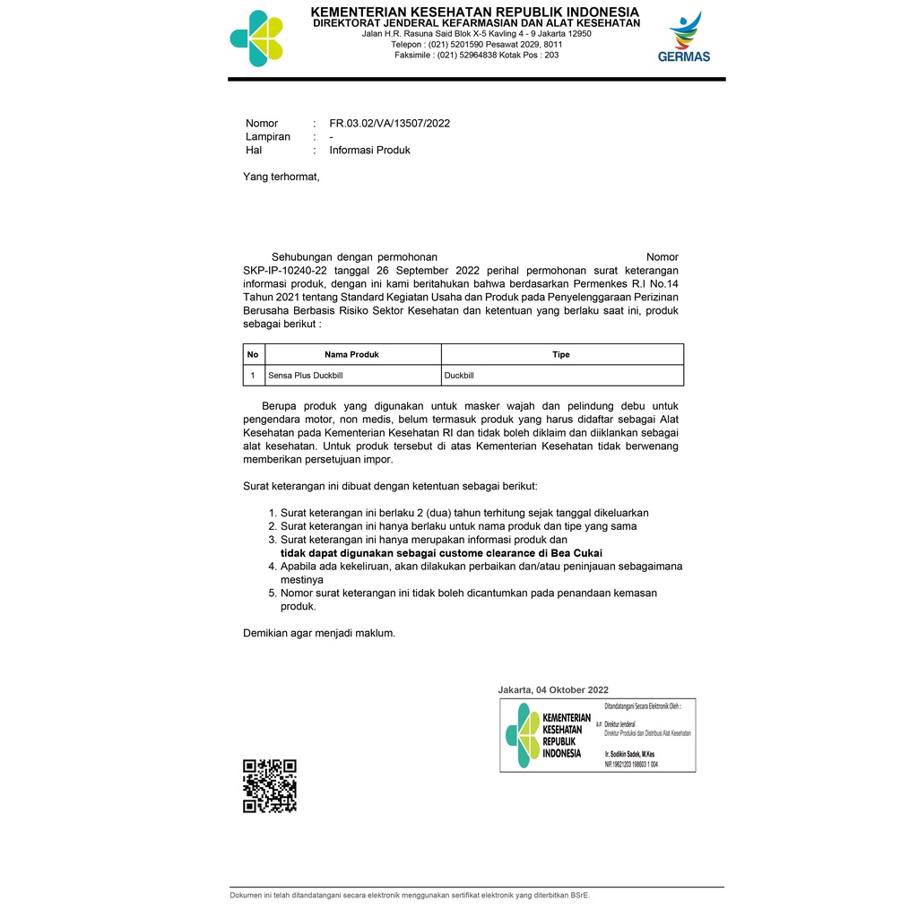Masker Duckbill 3ply Earloop Sensa Plus isi 50pcsMasker Duckbill 3ply Earloop Sensa Plus isi 50pcs
