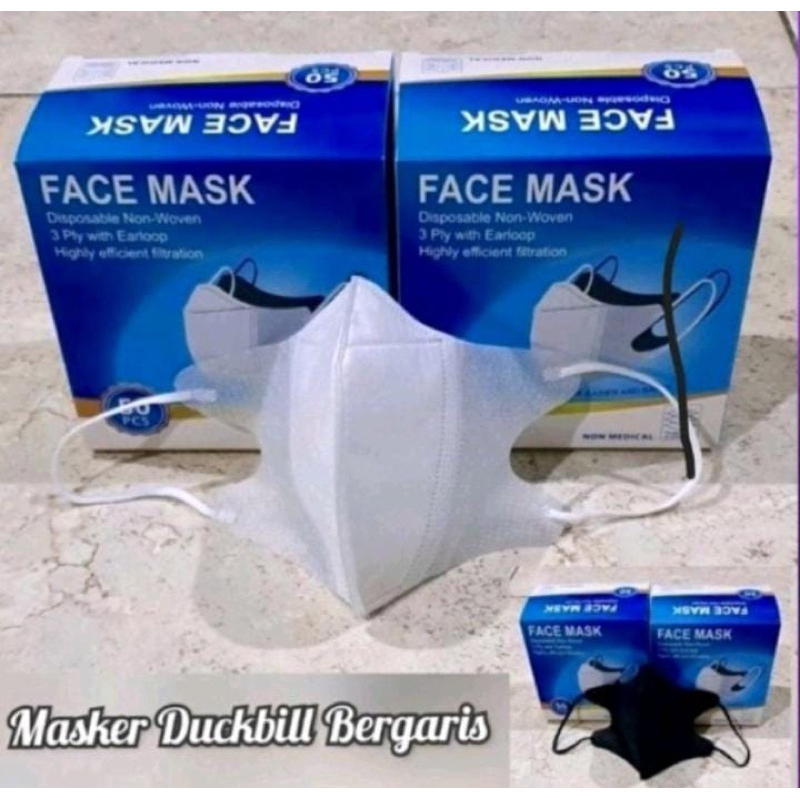 masker duckbill bergaris tersedia warna hitam dan putih isi 50 pcs