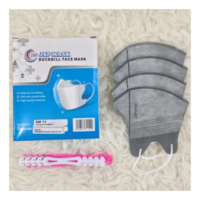MERK : JSP MASK DUCKBILL ISI : 50 PCS 3 PLY PREMIUM ADA EMBOS LOKAL INDONESIA WARNA : PUTIH, HITAM ABU