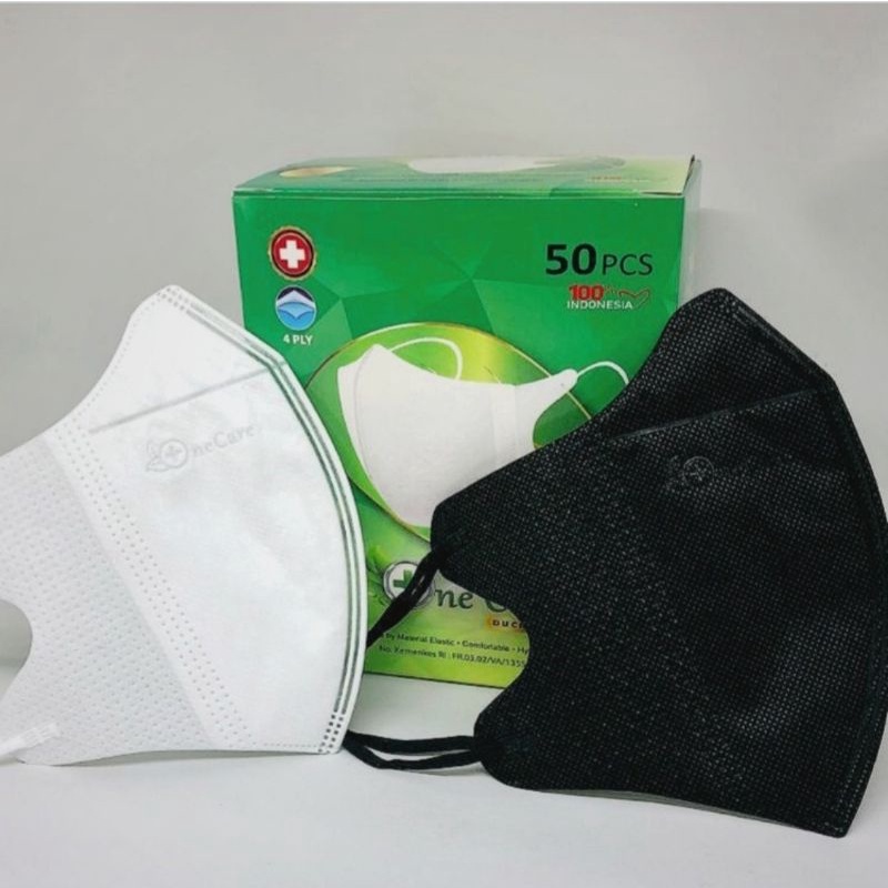 Kesehatan > Obat-obatan & Alat Kesehatan > Sarung Tangan & Masker Medis > Masker Duckbill Premium ONECARE EMBOS 4ply tebal tali pipih Warna Hitam dan Putih isi 50pcs+BOX