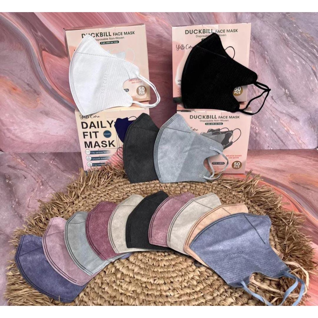 Detail MASKER DUCKBILL Y&B GARIS MIX WARNA WARNI WARNA TALI SENADA ISI 50 PCS