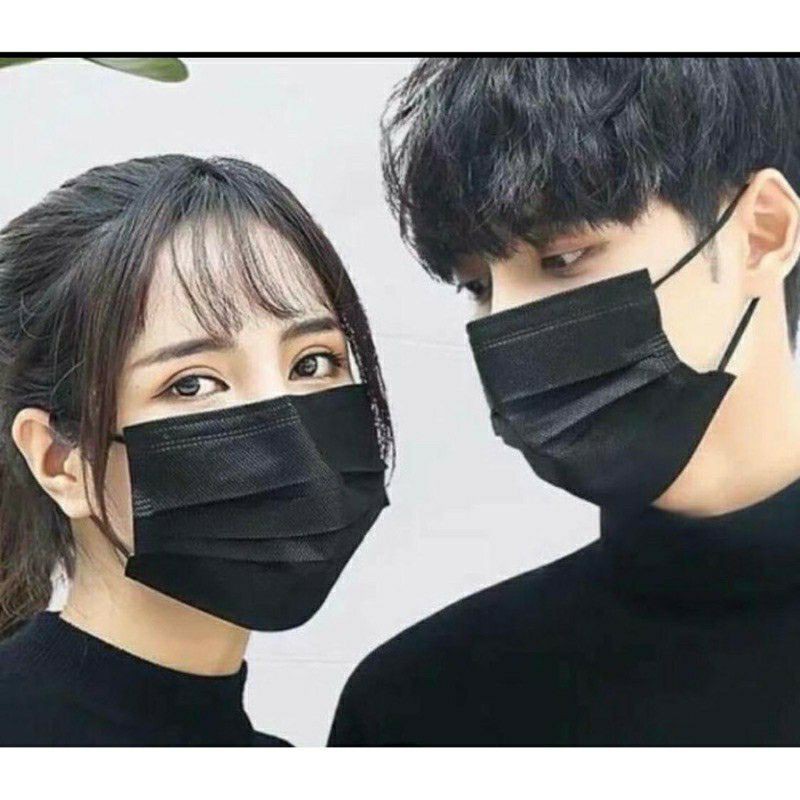 Detail Masker Earloop 3 Ply Alkindo Hitam Disposable Mask Non Hijab isi 50pcs