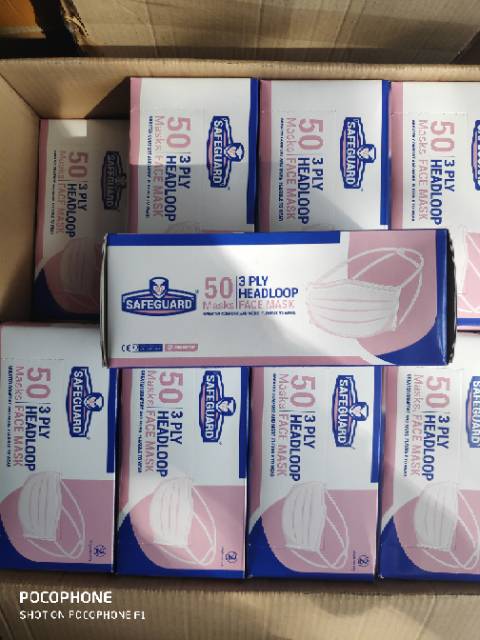 Masker headloop safeguard isi 50 adalah produksi satu pabrik ma sensi produk pt.arista.
