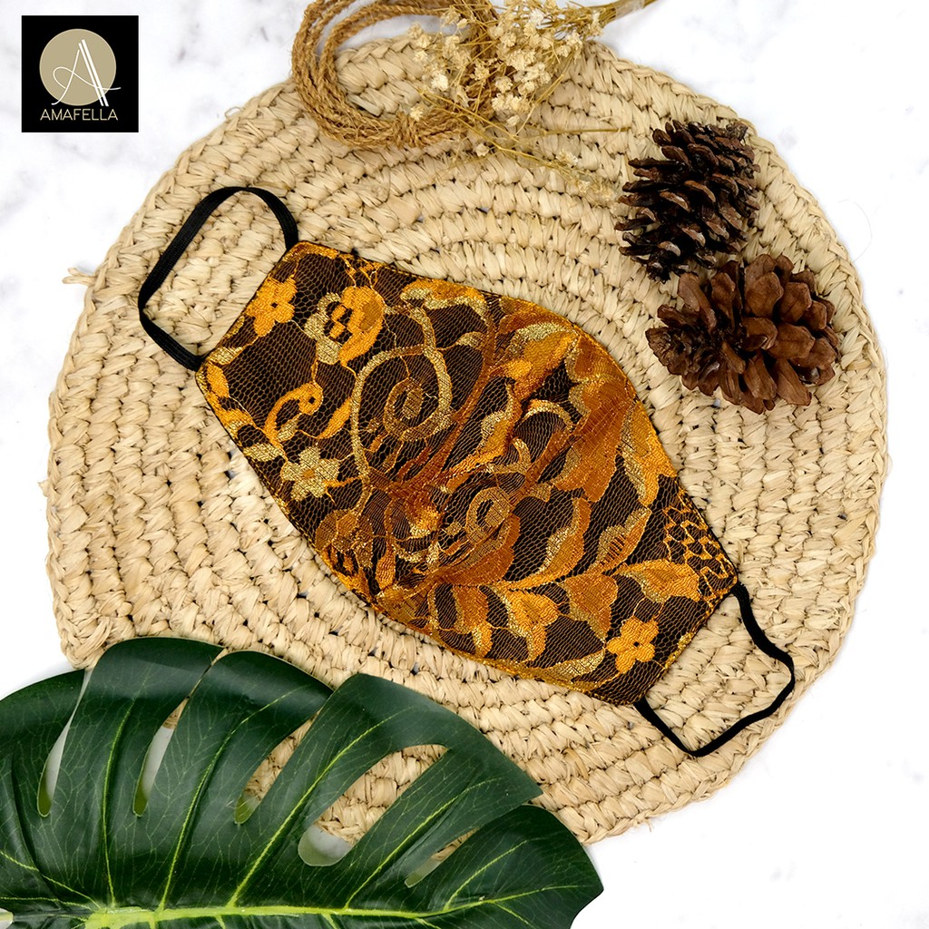 KEUNGGULAN - Motif brokat/brukat unik dan variatif - Terdapat tempat masker untuk menyimpan masker saat ingin makan atau minum - Menggunakan Snap Button / Kancing Cetet agar masker tidak mudah jatuh dari tempatnya - Nyaman digunakan