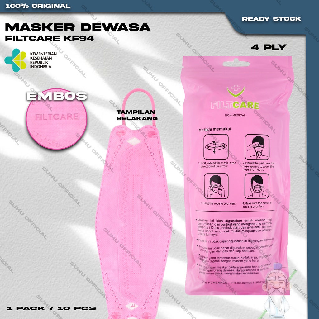 Kesehatan > Obat-obatan & Alat Kesehatan > Sarung Tangan & Masker Medis > Masker KF94 FILTCARE 4Ply isi 10Pcs Apricot Korea KF 94 4Ply Earloop Surgical Mask Kemenkes