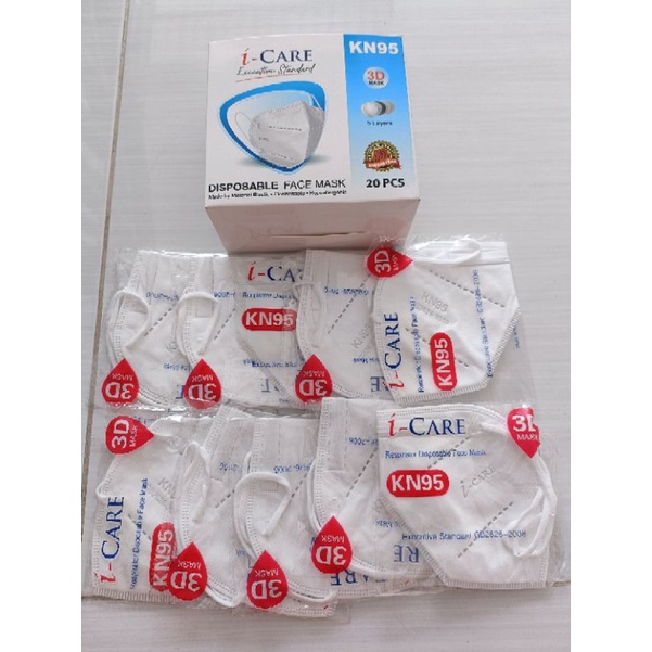 masker kn95 5ply i-care 3d ORI ada emboss icare harga 1box isi 20pc. kemasan PER 1 PC DIPLASTIK KN95