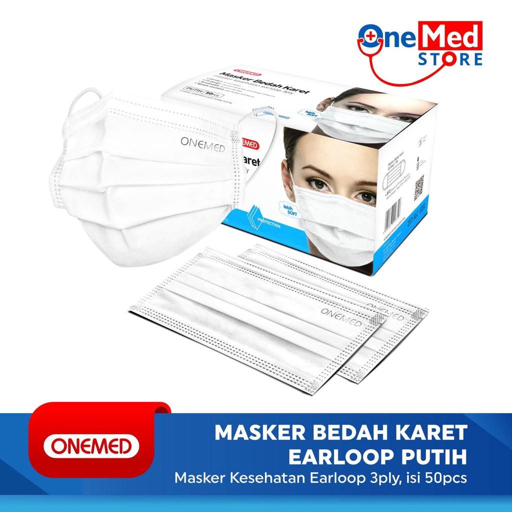 Detail Masker Medis Karet Putih OneMed Box Isi 50Pcs OJ2