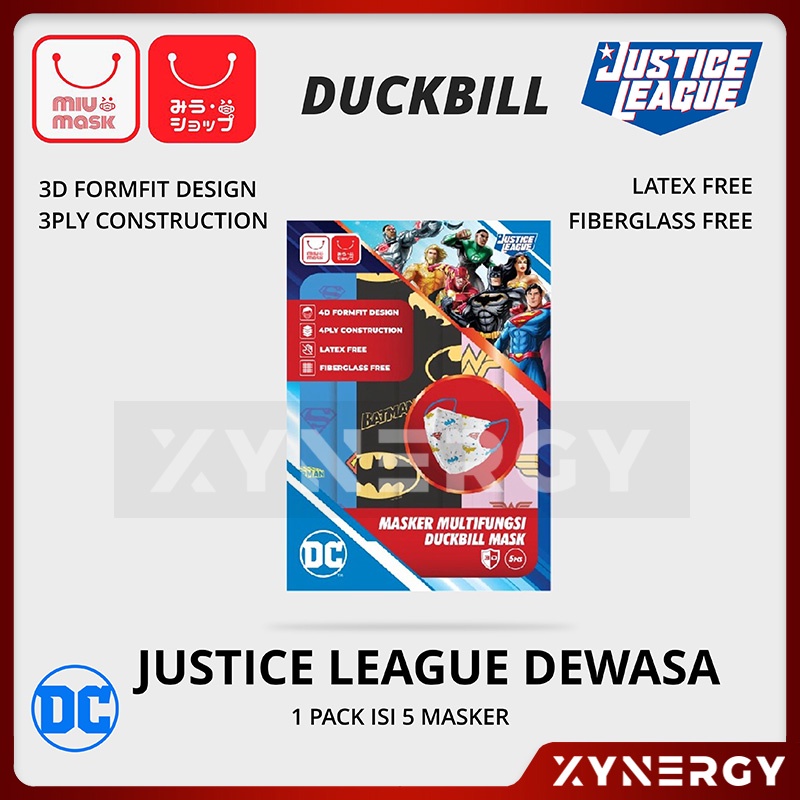 Detail Masker MIU MASK Justice League 3D Duckbill Mask Dewasa (3Ply)