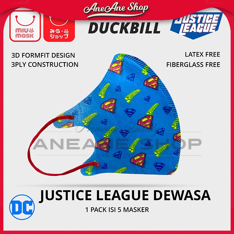 Detail Masker MIU MASK Justice League 3D Duckbill Mask Dewasa (3Ply)