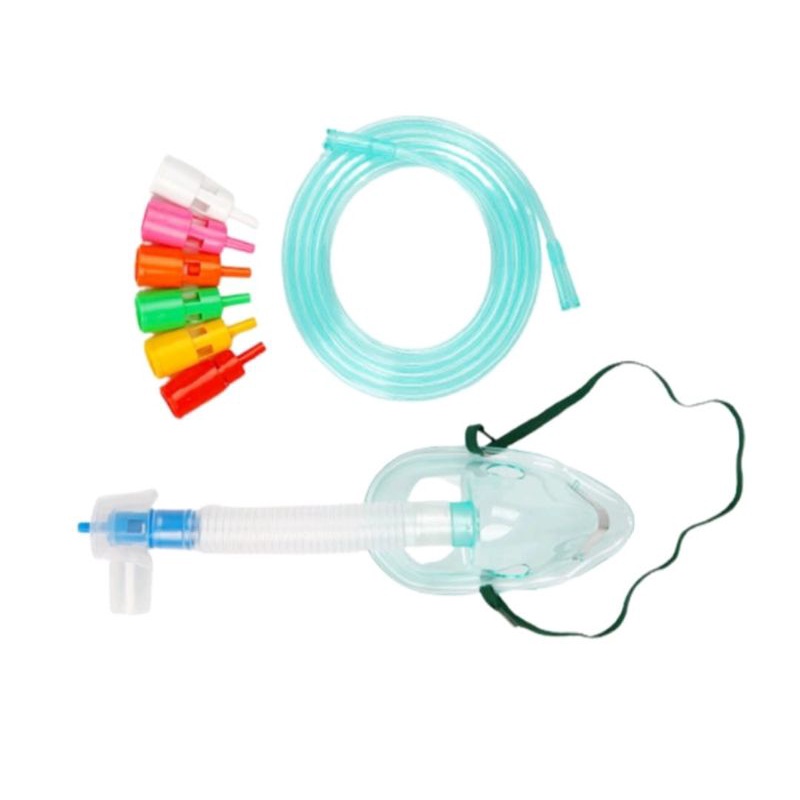 Venturi masker oksigen dengan tubing (6 diluter) konsentrasi tinggi masker. Venturi mask merupakan metode pemberian oksigen paling akurat dan dapat diandalan untuk konsentrasi oksigen yang tepat melalui cara non invasif. ED. 2026/08