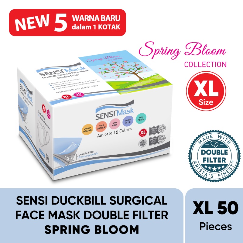 Sensi Mask Duckbill Face Mask merupakan masker pelindung wajah dengan model duckbill yang berfungsi untuk melindungi saluran pernapasan dari debu, asap, kuman, polusi, cairan, dan partikel mikro lainnya. Masker jenis ini memiliki design dan bentuk yang pas sehinga aman dan nyaman ketika digunakan. Penggunaan masker ini juga mampu menyaring sampai 95% partikel berukuran 0.3 milimicro.