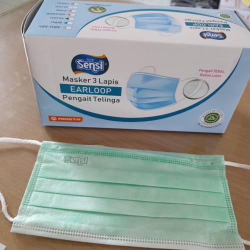 Masker SENSI Mask Earloop 3 ply Sensi Mask adalah masker penutup wajah untuk melindungi dari resiko terpapar debu asap kendaraan dan polusi. Penggunaan Sensi Mask dapat menyaring sampai 95% partikel berukuran 03 micro mili. Breathable, Comfortable and Disposeable. - Terdapat Emboss Logo Sensi pada setiap masker - 3 ply - 95% filtrasi partikel 3 μm (masker bedah) - Meminimalkan kontaminasi dari mikroorganisme - Dari desain yang pas hingga yang aman - Pengait telinga lembut dan non lateks