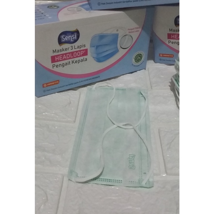 masker sensiheadloop atau hijab 3ply kwalitas bagus harga untuk pembelian masker 1box isi 40