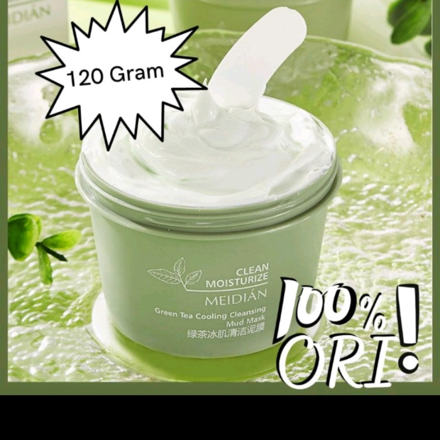 Detail Masker wajah Meidian and anti-acne Green tea clay mask 100g/Mud Mask Green Tea 100g Masker Wajah/Green Tea Mud Mask 100gr/ Masker Lumpur Wajah Teh Hijau / Green Tea Cleansing Mask Memutihkan Anti Jerawat Deep Cleansing Mengurangi Minyak