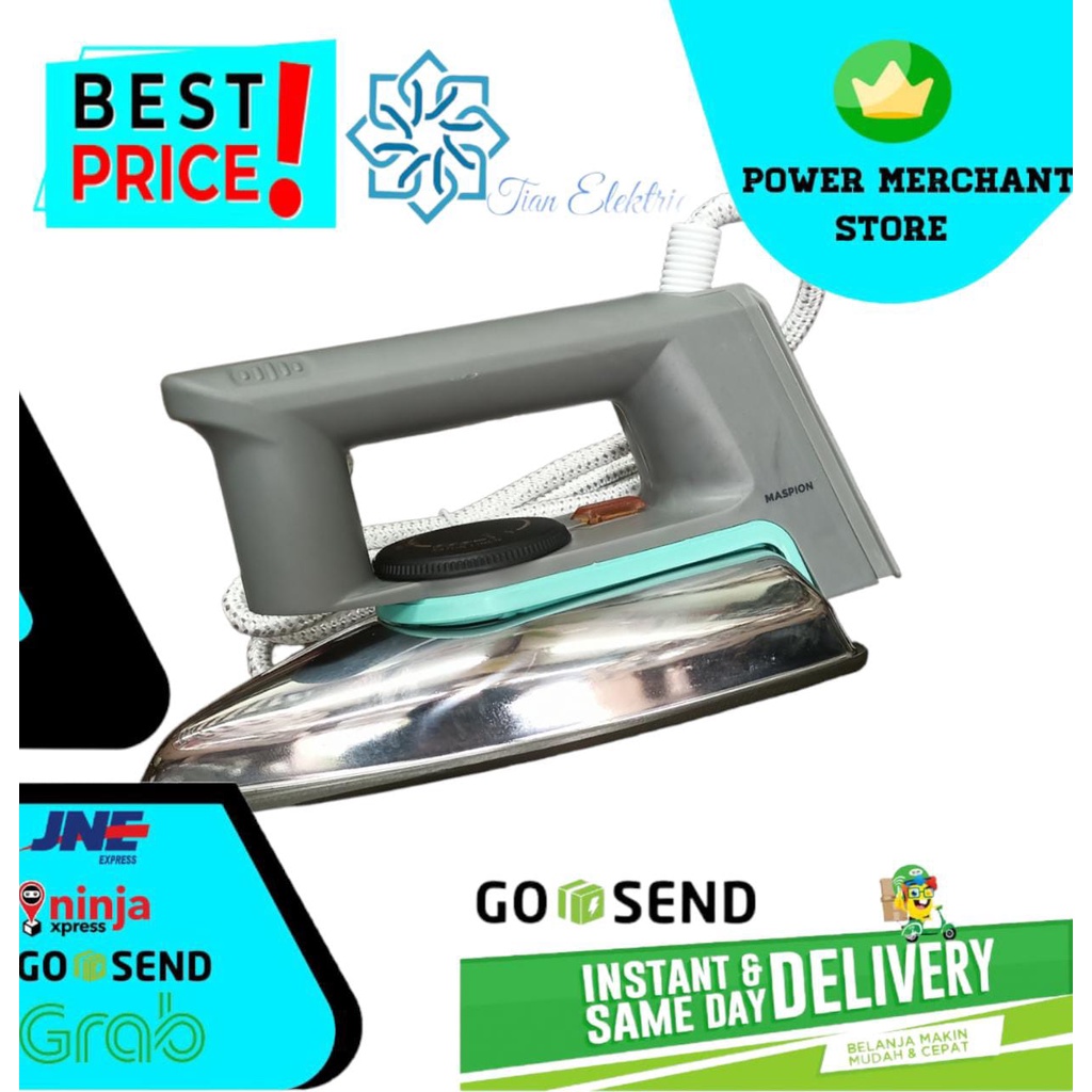 Spesifikasi Nama Produk : Maspion Setrika Tipe : EX-1010 Panjang Kabel : 1 Meter Bahan Material : Besi Daya : 350 Watt Tegangan : 220 Volt / 50 Hz Dimensi (P x L x T) : 23 cm x 11.5 cm x 13.5 cm Anti Lengket : Ya Berat : 2 Kg Warna : Abu-abu Lampu Indikator : Ya Memiliki Spay : Tidak