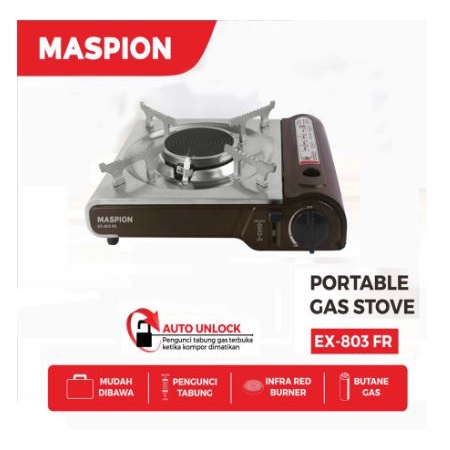 Kompor Gas Portable dengan bahan body Stainless Steel yang anti karat serta mudah dibersihkan.
