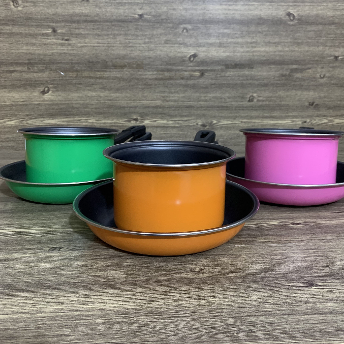Peralatan rumah tangga alat dapur sangat cocok dimiliki untuk keluarga kecil maupun keluarga besar pastela set panci dan teflon dengan desain elegan dan ekonomis tidak terlalu besar memudahkan dalam penyimpanan
