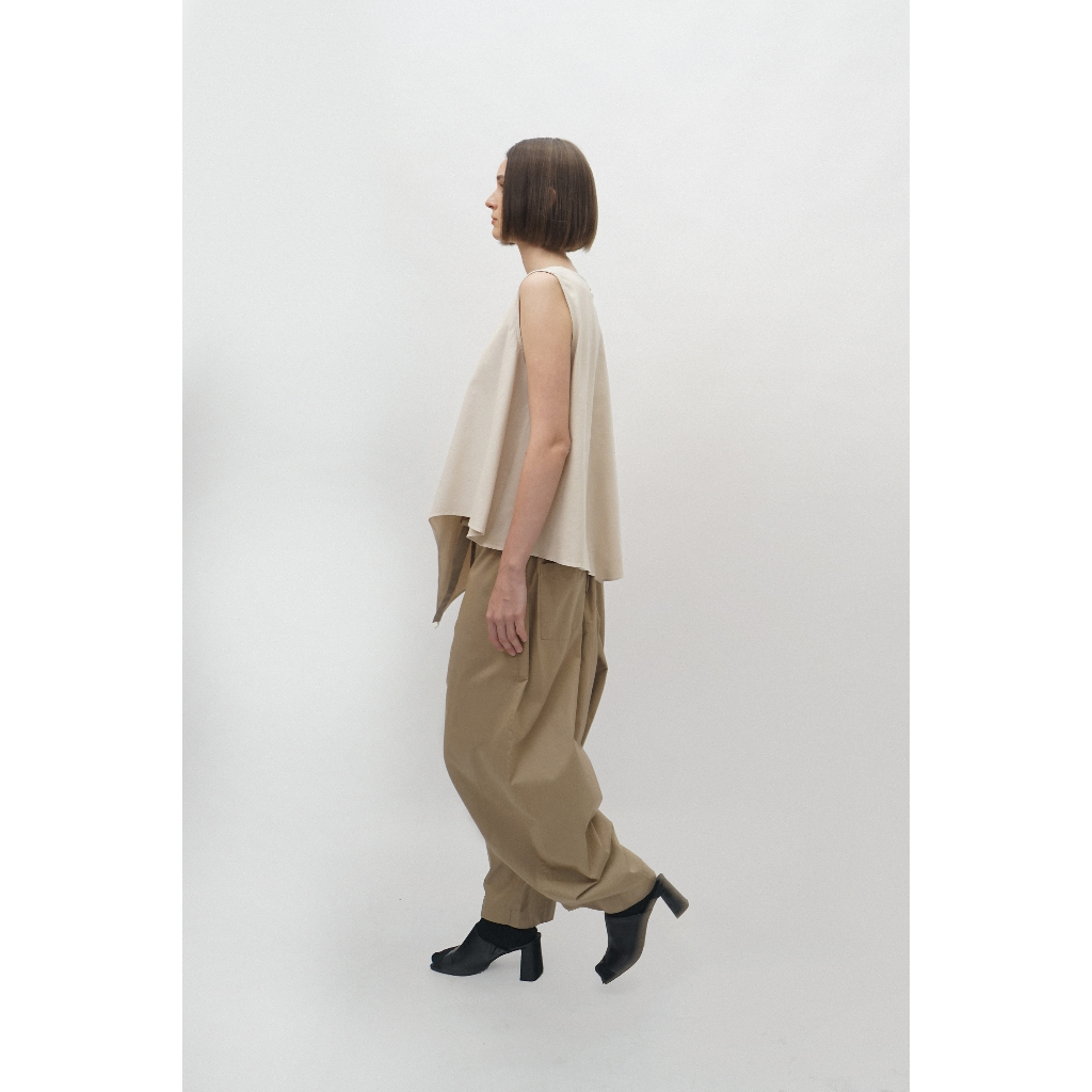 DETAILS Relaxed fit sleeveless round neck womenswear tee with asymmetrical bodice design.