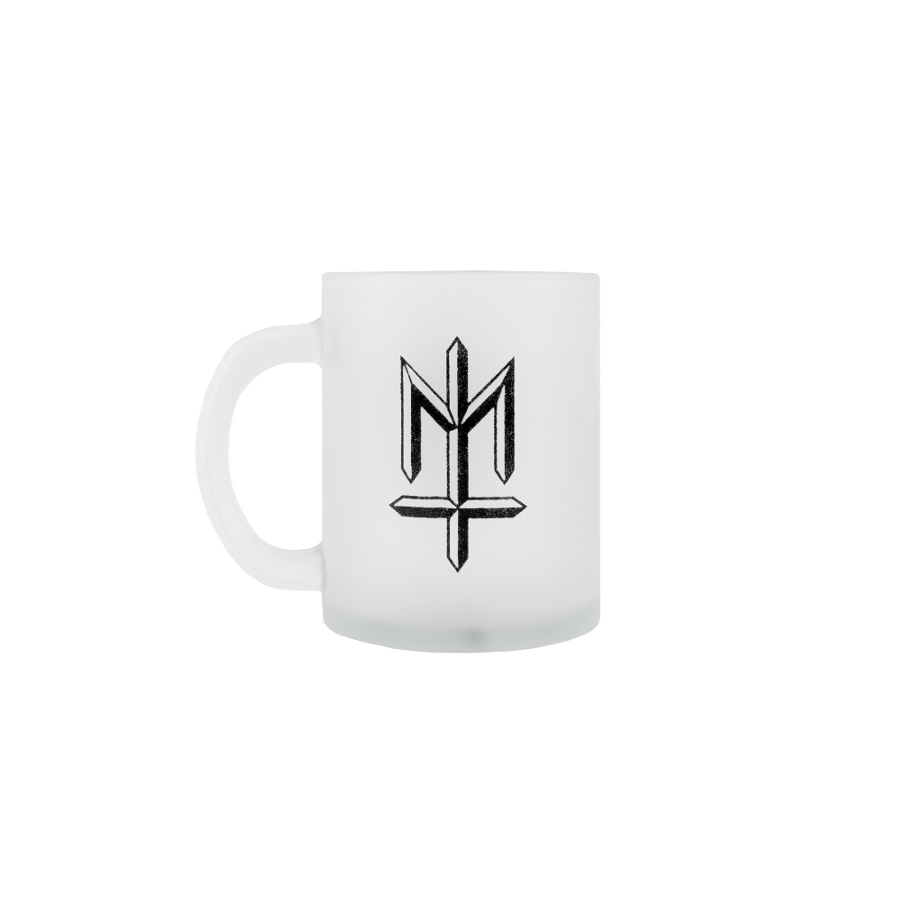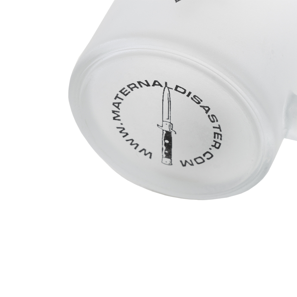 Clear frosted mug with black ink screen printing