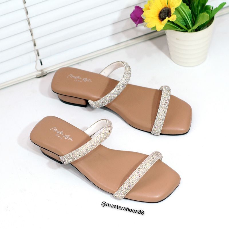 MASTER DD02 - Sandal flat wanita dewasa hak 3cm variasi permata terbaru termurah