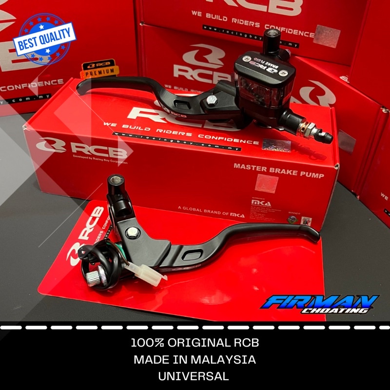 Nama product : Master rem rcb universal Spesifikasi : Original RCB made in malaysia jaminan awet , berfungsi dengan baik , Nyaman , Universal (bisa di aplikasikan untuk segala jenis motor) Keterangan : Bisa beli sepaket (kiri kanan) atau ecer (kiri saja bisa kanan saja bisa)