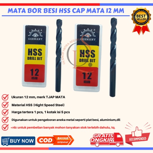 Mata Bor Besi HSS 12 mm Mrek Cap TJAP MATA Berkualitas⠀
