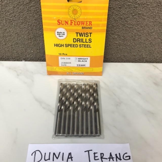 Mata Bor Besi BUNGA MATAHARI 7,5mm HSS Twist Drill Bit 7,5mm SUNFLOWER