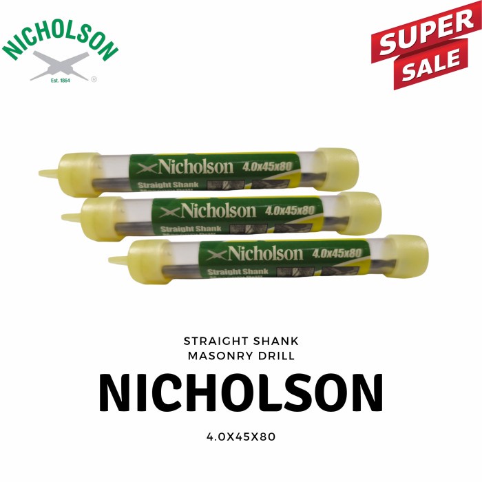 Mata Bor Beton Nicholson Tembok 4 MM x 45 x 80 Straight Shank Masonry