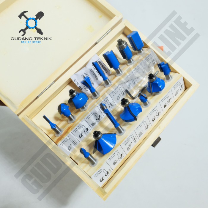Perlengkapan Rumah > Perkakas > Bor, Obeng & Aksesoris > Mata Profil Kayu Router Bit SET isi 15 Pcs ASRB02-015 AST / Mata Trimmer Kayu Paketan Tool 1 Set 15Pcs ASRB02-015 AST