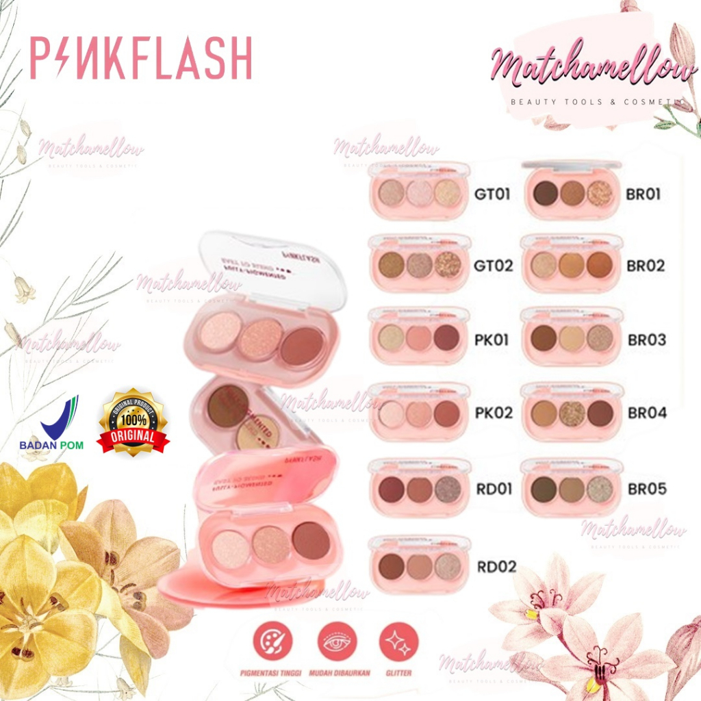 Detail ❄️MATCHA❄️PINKFLASH 3 PAN EYESHADOW PALLETE - GLITTER HIGH PIGMENT EASY TO BLEND