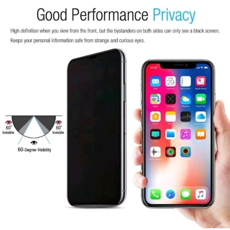 KELEBIHAN : • Anti Pecah karena berbahan film / keramik (bukan kaca) • Anti minyak, Jadi ketika anda sedang menelpon dan bersentuhan dengan muka anda yang berminyak. Screen pada gadget anda tidak akan ada bekas • Anti glare, mampu melindungi screen dari goresan debu dan dapat melindungi anti silau matahari • Full lem, dimana screen dan sudut layar handphone anda bersih dan tidak gemblung • Anti Privasy (Anti Spy / intip sebelah), dimana layar handphone kita hanya bisa dilihat secara lurus dari depan pengguna [90 derajat], sedangkan orang lain tidak bisa melihat • Full cover / Full Screen / Full layar, dimana sudut layar handphone anda dapat terlindungi dengan benturan ataupun begitu jatuh.
