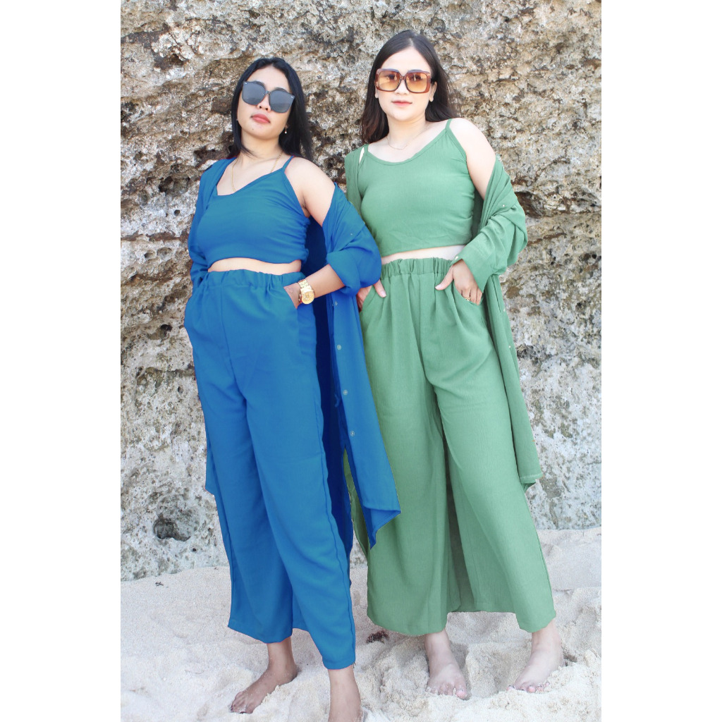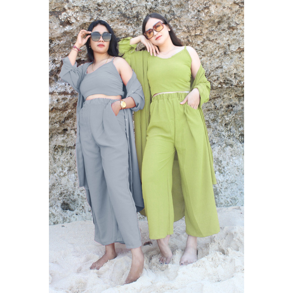 Maureen Boutique Setelan 3in1 Crinkle Airflow / Long Tunik Plus Inner Kemben Plus Celana Kulot Highwaist