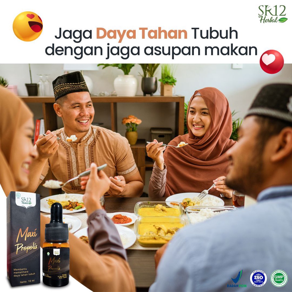 Propolis bisa juga dikonsumsi dengan cara dicampurkan dengan larutan air hangat. Dosis pemeliharaan untuk menjaga kesehatan : 2 tetes Maxi Propolis SR12 dilarutkan ke dalam setengah gelas air putih hangat (2x sehari)